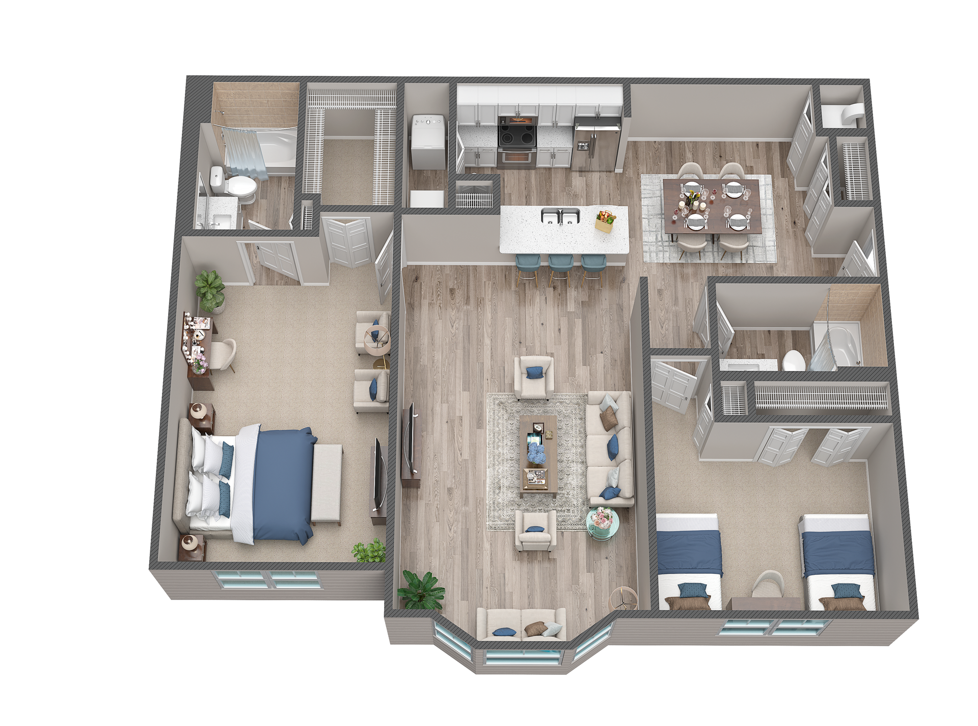 - Studio, 1, 2 & 3 Bedroom Layouts